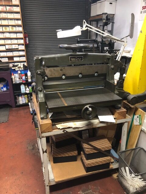 (See images below) Vandercook 4, Griffin 40×60” etching press, 60×60” work table, 12×12” photopolymer platemaker, 23” Chandler & Price manual guillotine, 40” paper cutter, 23×30” soaking tray, 10×12” patmag, rubber based letterpress inks, standard letterpress printing tools, eco-friendly clean up materials, work apron, wi-fi access, small fridge, microwave, electric tea kettle and unlimited tea. Space is 650 sq feet.